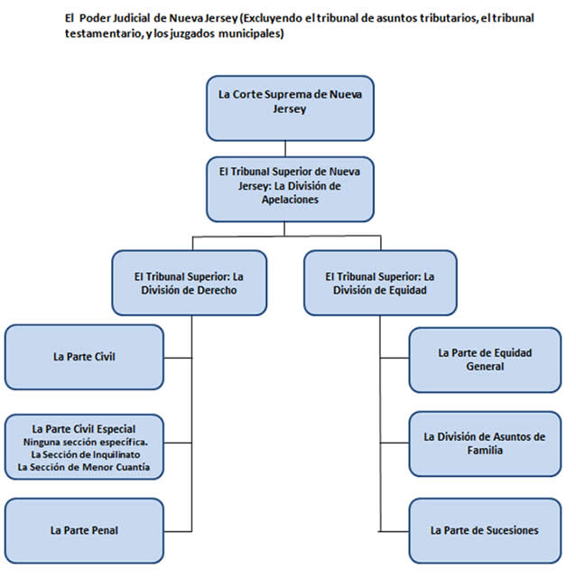Aquí encontrará una gráfica del sistema jurídico en el Estado de Nueva Jersey: