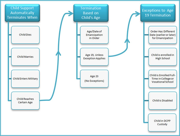This law will not change the terms of your child support order. If your child support order states either the exact date the child will be considered emancipated, such as the child’s 22nd birthday, or an event that will trigger the child being considered emancipated, such as when he graduates from college, this date will be considered the termination date for child support. If your child support is collected and enforced through the Probation Division, that date (or expected date) will be noted as the termination date.